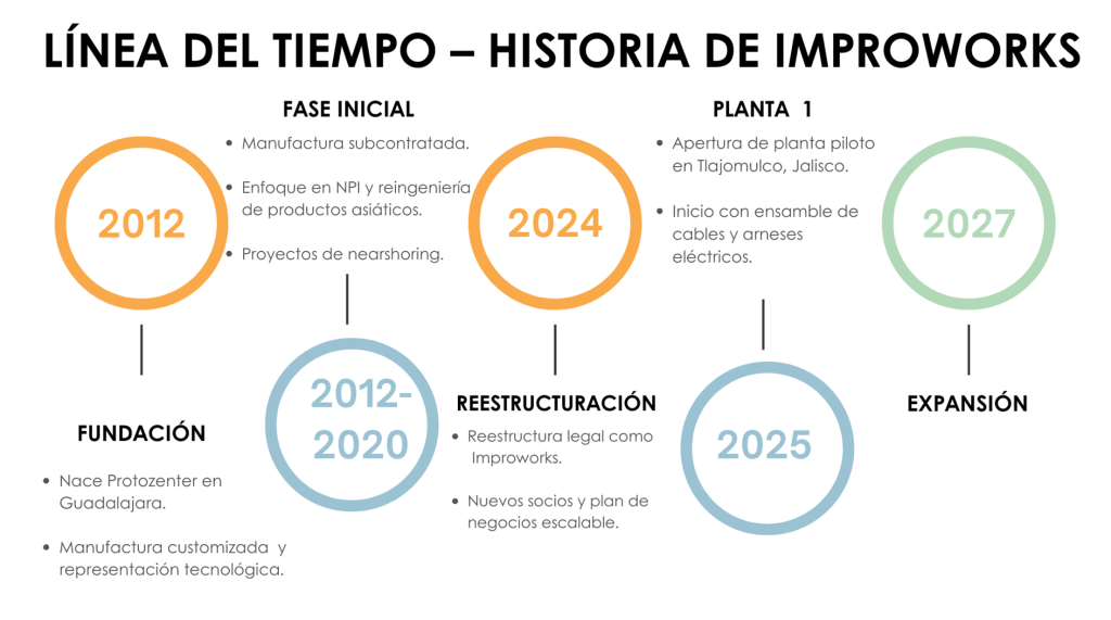 Founded in 2009 in Guadalajara, Jalisco, Improworks began its journey as Xproworks, a trusted third-party supplier specializing in precision machining and sorting services. As we grew, we expanded into prototyping and parts approval under the name Protozenter, always focused on creating high-quality, customized solutions for our clients.